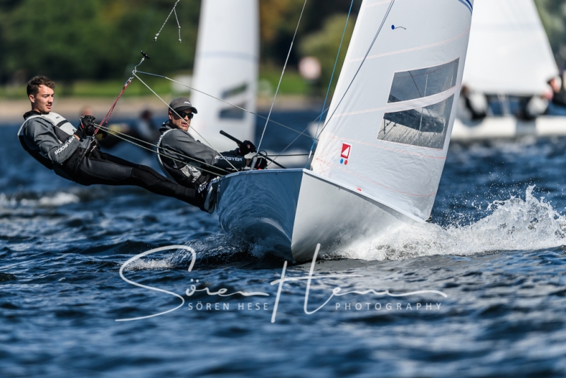 Auf dem schwierigen und drehenden Revier mit westlichen Winden zwischen 2-4 Bft. segelten sie mit konstanten Ergebnissen ganz nach vorn. Zweiter wurde die Mannschaft Shmuel Markhoff/Michael Happich vor den Deutschen Meistern aus dem Jahr 2017 Kay-Uwe Lüdtke (YCBG)/Kai Schäfers.
